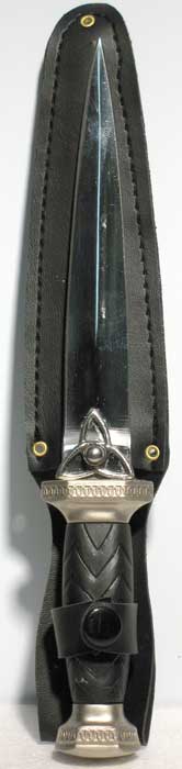 This Athame brings a powerful symbol of the three forms of the Goddess and mind, body and spirit into your ritual work. Cannot ship to MA or CA. 9 1/2"