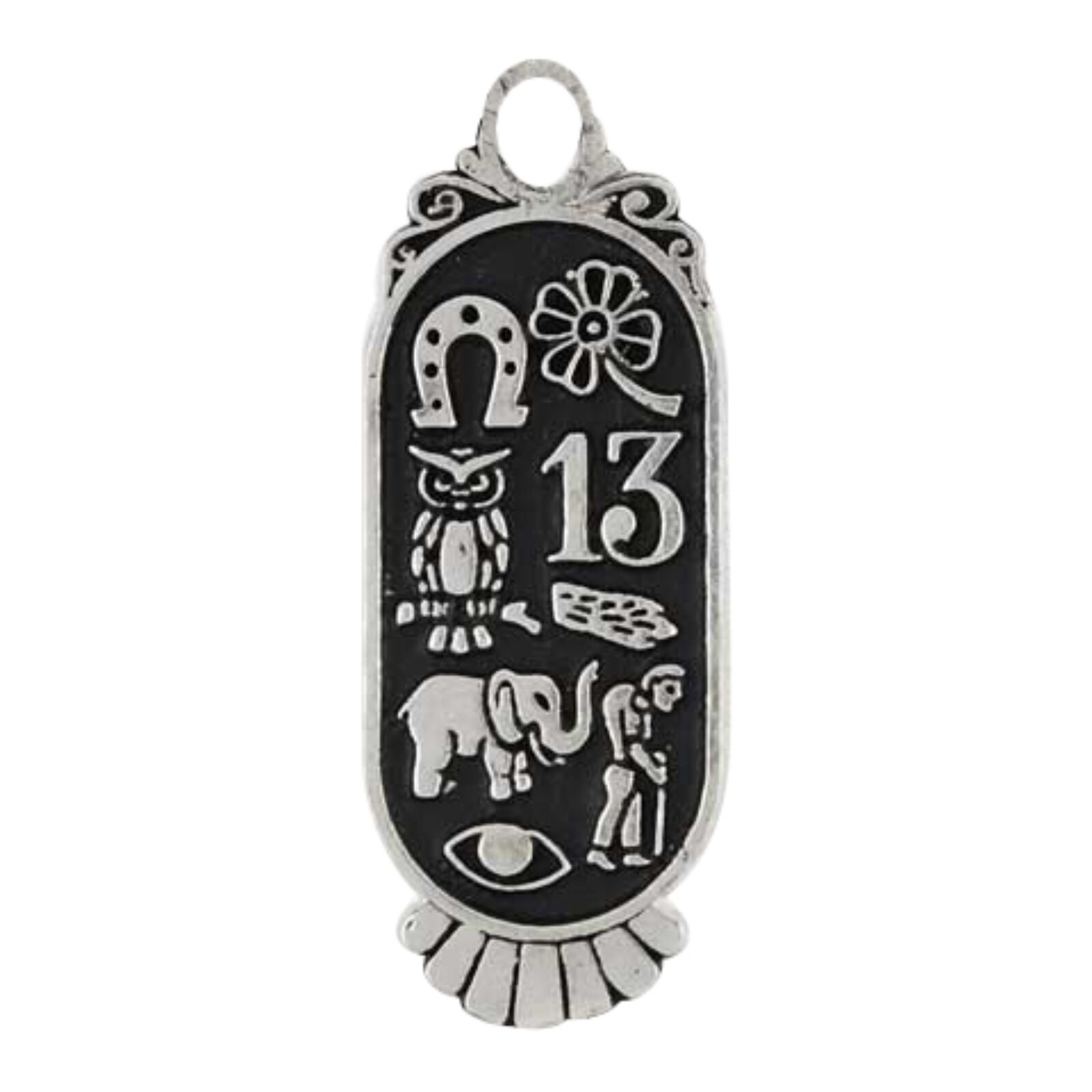 This amulet is blessed and inscribed for prosperity and good luck. The powerful symbols enrich you and produce abundance of wealth and happiness. 1 1/2" with cord.