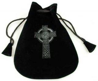 Often viewed as a symbol for eternity or rebirth, the Celtic cross on this bag makes it a potent tool for creating spells of rebirth or a mojo bag or gris gris bag. 5"