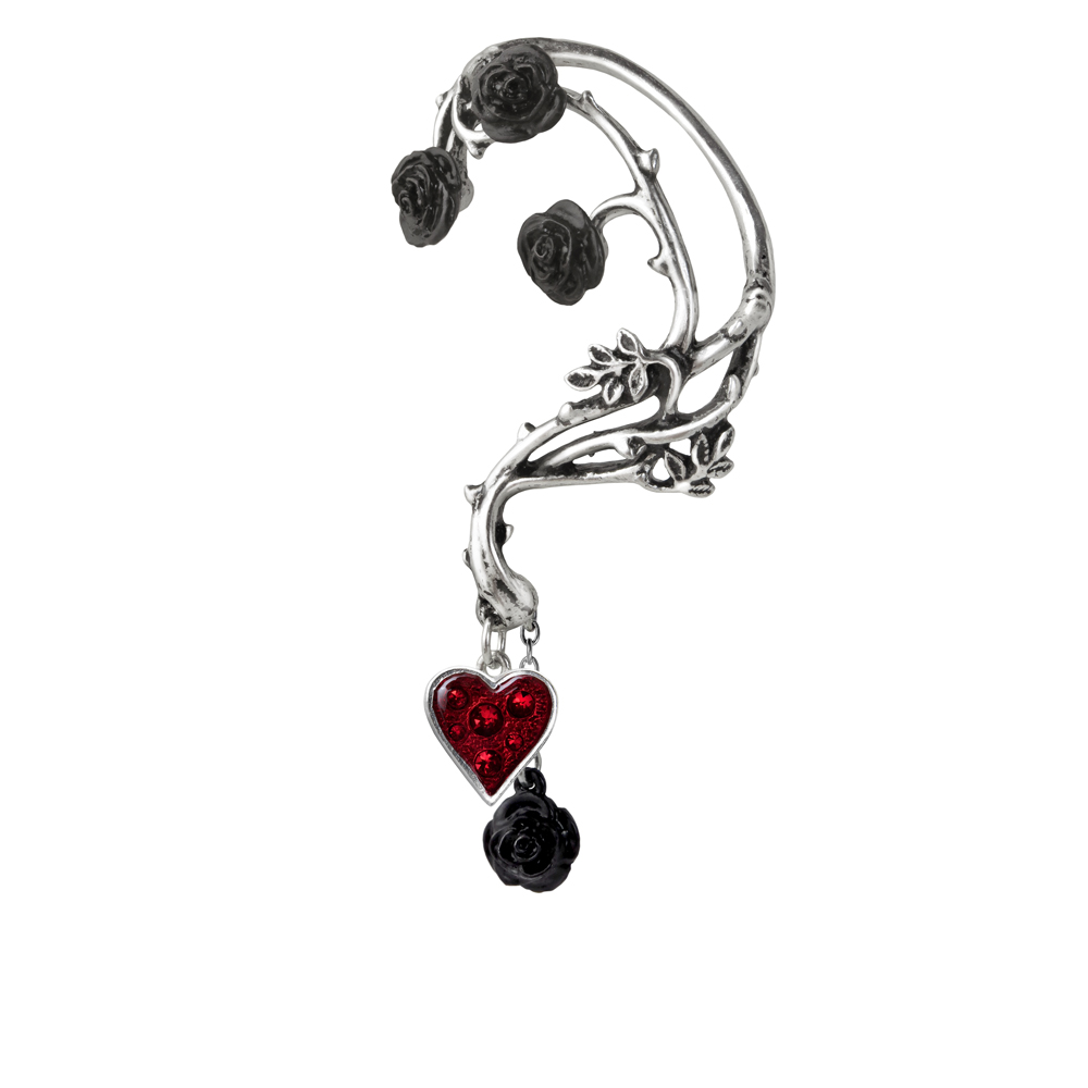 The poetic tragedy of a bleeding heart; with black roses and crystals below the enamelled heart. Matching necklace, ring & watch available. Width 2.05" x Height 3.70" x Depth 0.63" Approx.