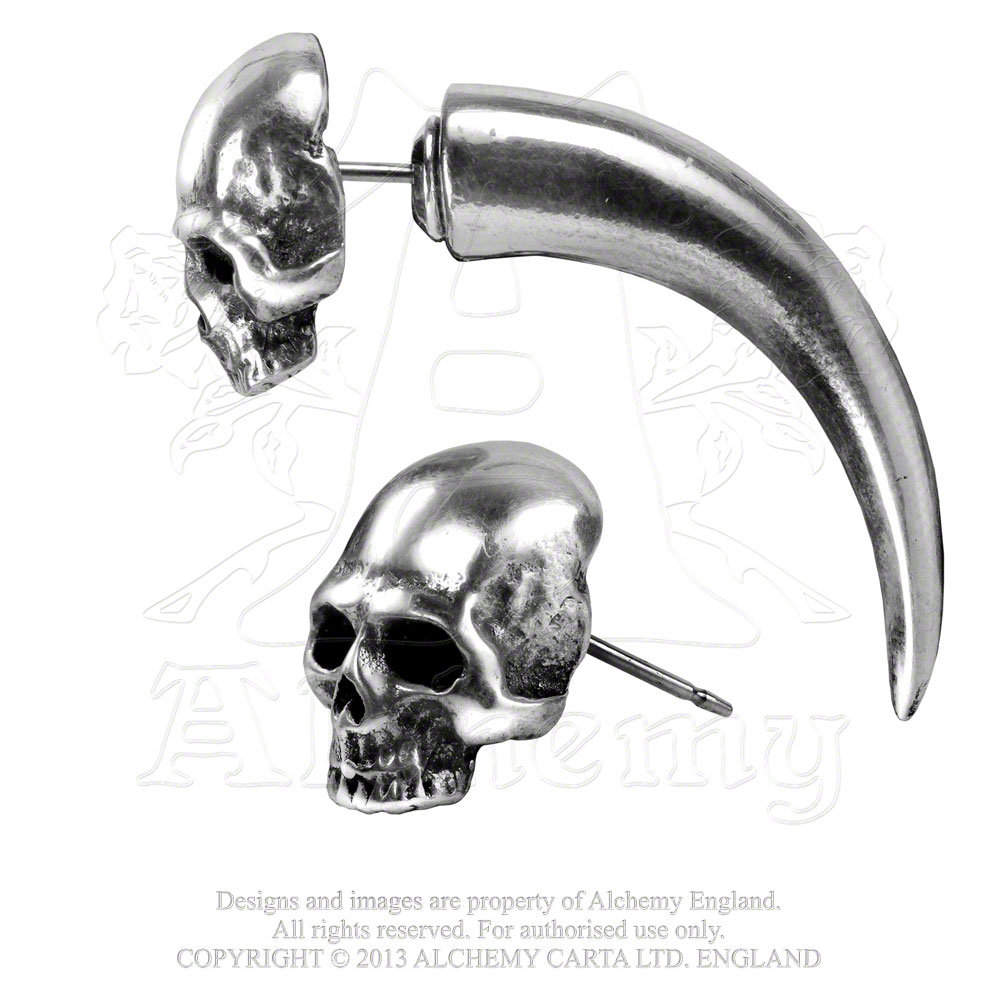 Illusion of a 7mm curved horn with plain skull end. This item can be worn by a regular pierced ear to give the perception of a stretch ear.