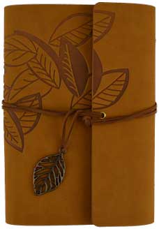 Embossed leaf design on the cover stretching around to the back of the book. Suede lining on the inside it holds a standard six ring mini binder that will accept standard journal or date book refill. 160 pages. 5